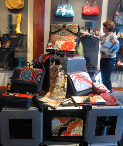 Friday, October 3rd was the fabulous, super amazing trunk show featuring KimonoMomo bags and scarves at King of Sole in downtown Bend, Oregon during the First Friday Art Hop. Wow! The response was fantastic and a lot of bags found new homes. One of my favorite scarves did, too. We’ve entered the holiday shopping season with a bang!