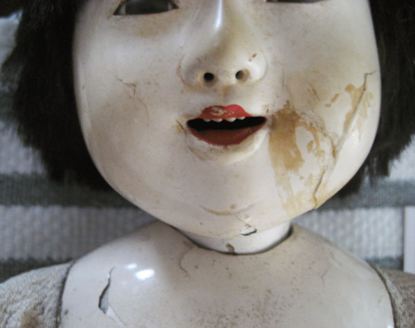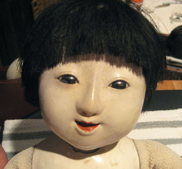 Here are some before and after pictures of the ningyo, courtesy of Ann Weaver in San Diego. Click on either image to see a larger version.