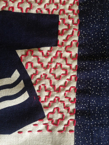 Sewing a straight line on this fabric is easy. Unlike standard Western quilting cottons, the weave is open enough that you can follow the weft. If you’ve never sewn sashiko before and were considering using embroidery floss and Western fabrics, stop now. Nothing beats Japanese thread on Japanese fabrics. They’re made for each other. Literally.
