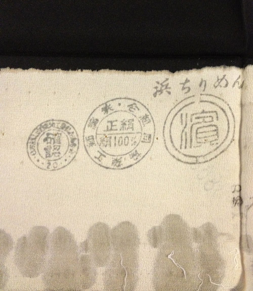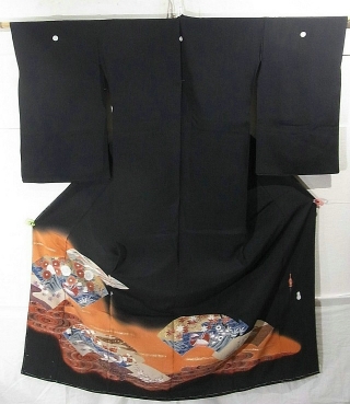The comparison in this series is between two different karinui kurotomesode (high formal women’s kimono). Both are black, both have richly colored designs along the hem, both are reasonably modern. What they differ in is the quality–and the price! The first one was fairly inexpensive, less than $75 including shipping from Japan. The second was more than double that. In taking them both apart, I’ll show you what makes one more valuable over the other.