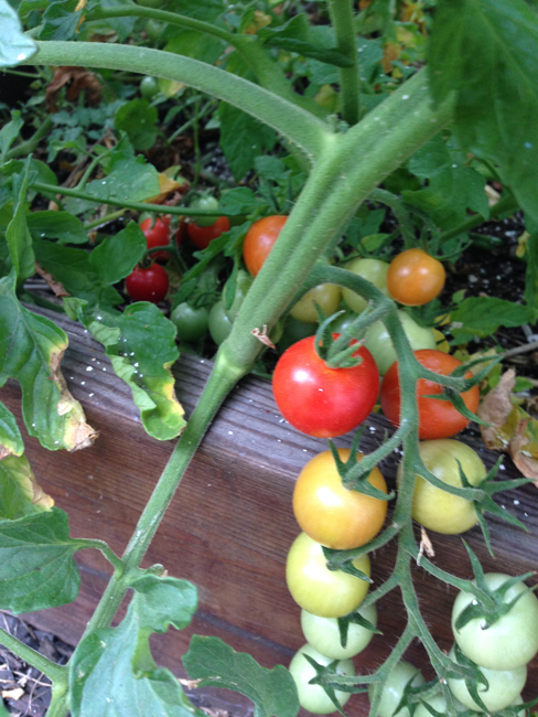 He builds raised beds and trellises for our feral tomatoes and squash to grow in, on, and around. Nearly everything in the vegetable garden is a volunteer from last year’s leftovers.