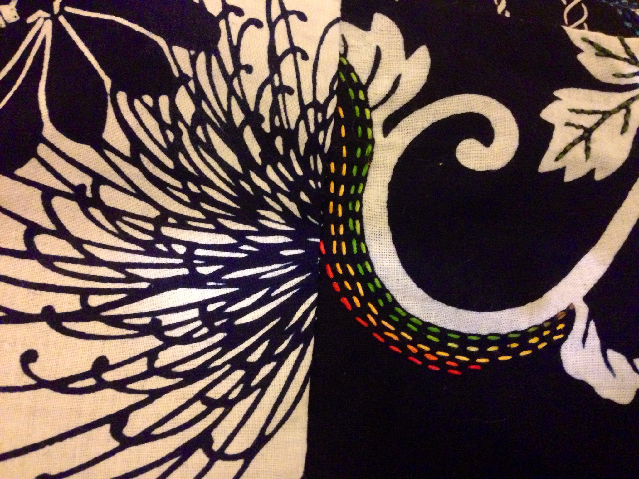 This was made using pieces of vintage yukata cotton and Hida variegated sashiko thread #201 in the photo below.