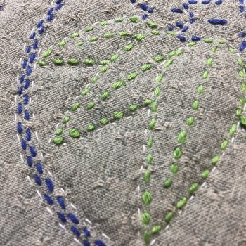 Add in batting, however, and things can get complicated. The loft from batting makes sashiko tricky. It’s inadvisable to use a hoop for sashiko because you want slack in your thread, not tension, and that slack can cause things to shift around while you’re working with batting.