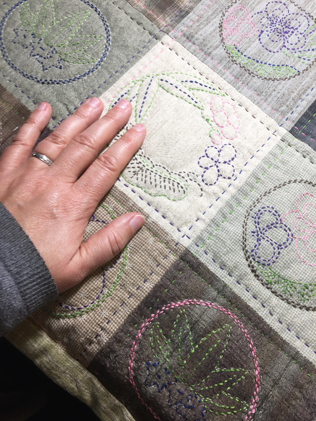 My mom was a hand quilter, which makes it logical that after watching her enjoy it for so many years,  I’d come to appreciate handwork, too. The slow pace, the gentle and rhythmic stitching, and the fabulous texture of it all.